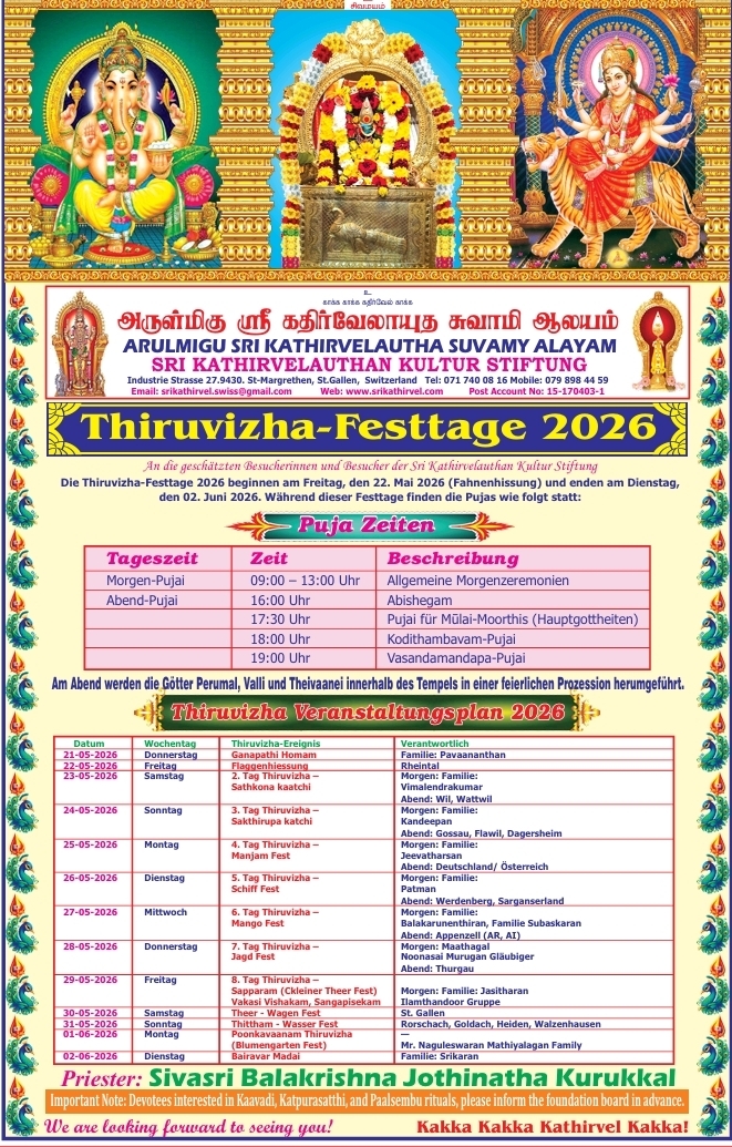 2026 Jahresfest Arulmigu Sri Kathirvelautha Suvamy Ahlayam